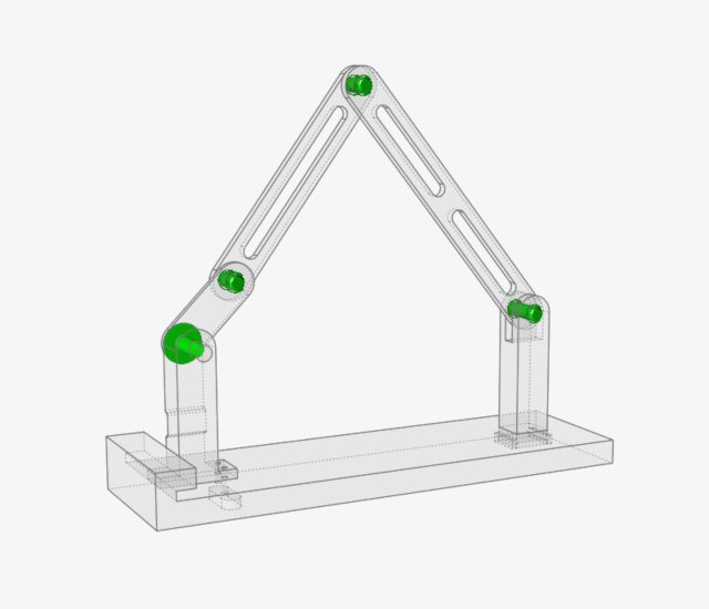 模型中相邻零件之间即会创建铰接。不同的颜色表示铰接状态(此处所有铰接状态均设置为“激活的”)。