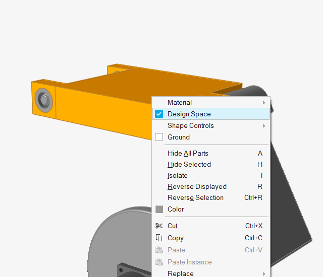 右键点击 Bracket 零件打开右键菜单,然后选择设计空间。