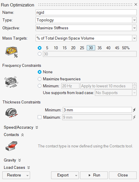 4. 选择最大化刚度作为“目标”。