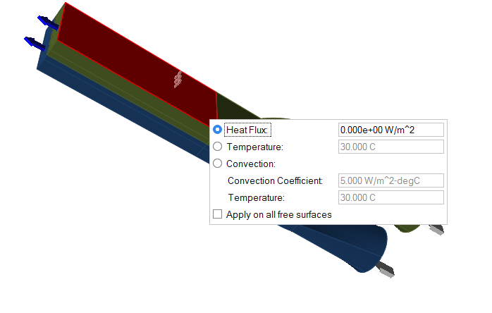 Specify heat transfer data on free surfaces exposed to ambient conditions.