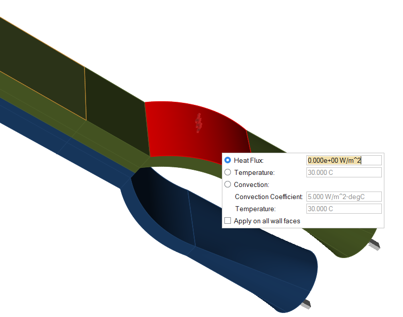 If the extrusion has a metal insert, that condition is applied using insert parts. Inserts are modeled using BCs (the interface condition between insert and the polymer).