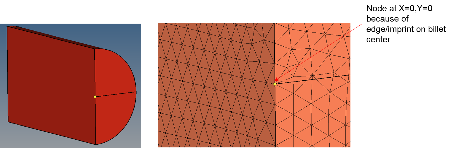 For the 180° sector model, we need at least one edge/imprint on the billet solid crossing the billet center.