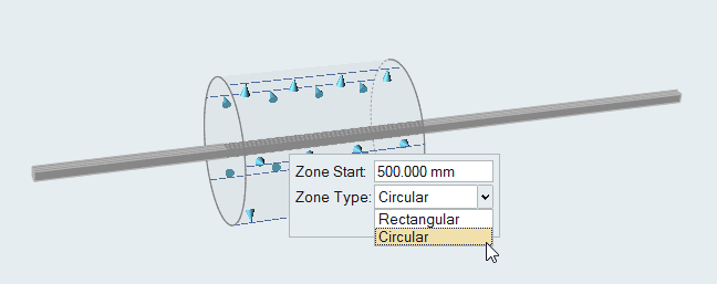 Inspire Extrude support two types of spray cooling zones - rectangular and circular.