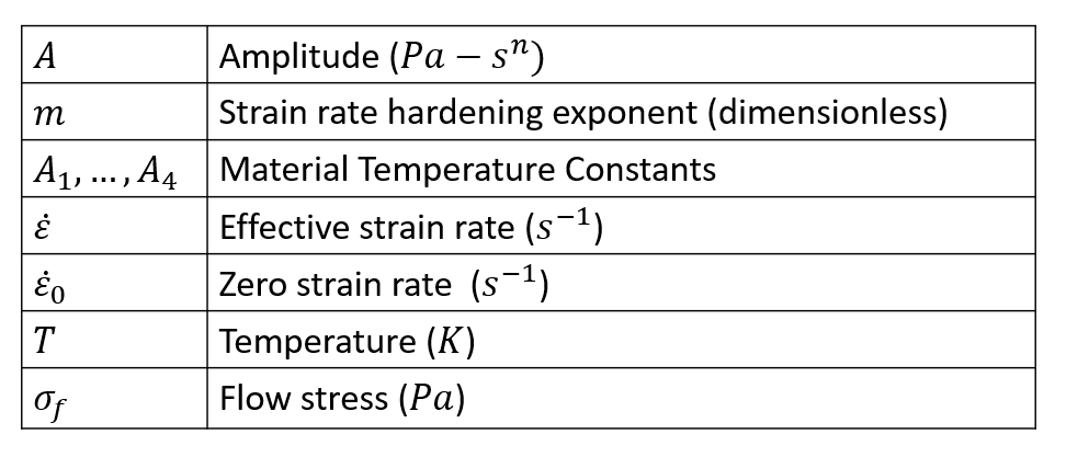 Temperature, strain, and strain rate dependent Norton-Hoff model used in HyperXtrude is given by the following expression.