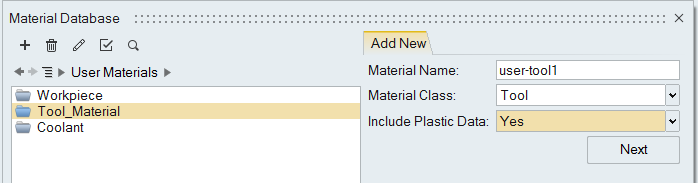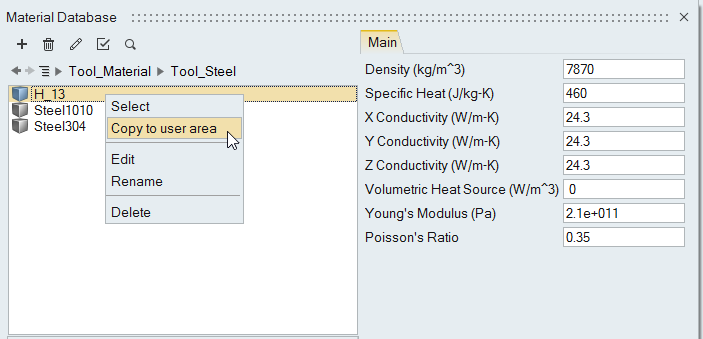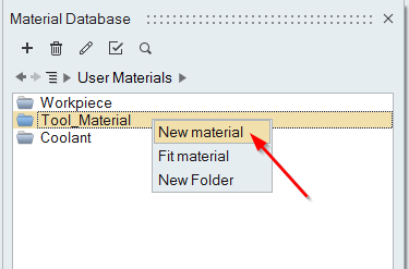 In the Material Database dialog, right-click on the Tool_Material folder and