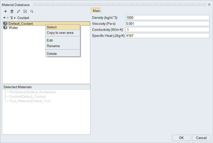 3. Select the appropriate material(s) for the analysis by right-clicking on the material and selecting Select from the context menu, or click .