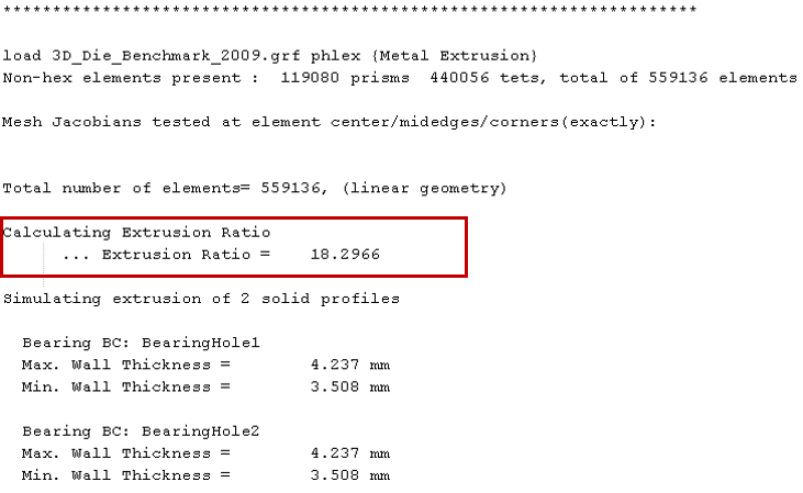 The pressure at the ram end provides the extrusion force required to push the billet. This data also provides information on the resulting extrusion loads on the die surfaces and can be used to predict tool deflection.