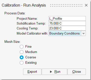2. Specify the parameters of the analysis process. Select 3D Mesh and Coarse mesh size.