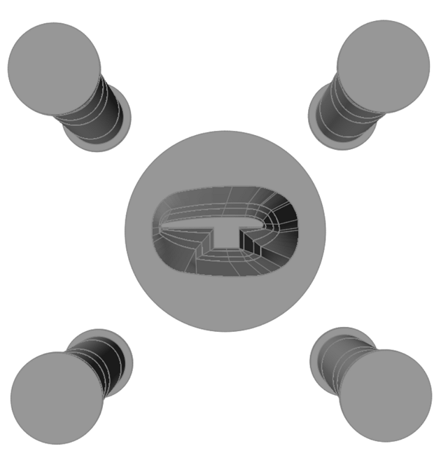 Select die plate solids that belong to the die assembly and delete them as shown. Reveal them by pressing A. These solids are not required for flow simulation and create issues in geometry cleanup.