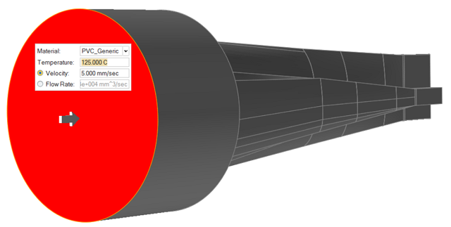 2. Zoom in to the inlet region of the polymer melt and select the inlet face.