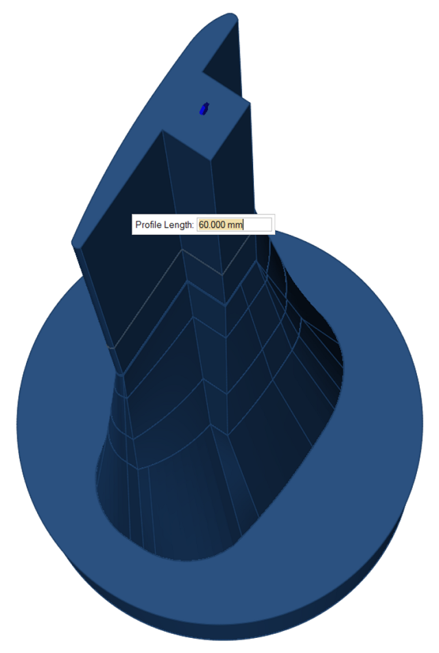 Inspire Extrude will create a Profile solid and use 3 times the length of Land as its default. You can change this as needed. This model requires a 60mm Profile solid length. There is only one exit in this model, so you do not need to repeat this step.