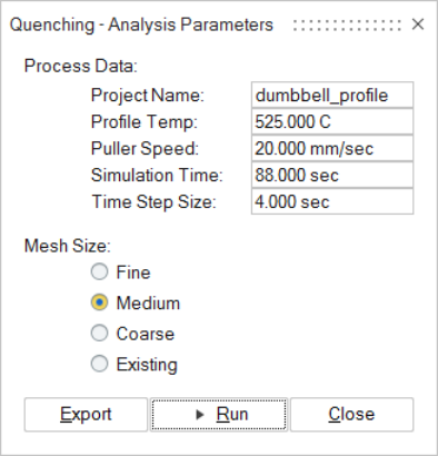 3. Enter and review the following parameters for the Quenching Analysis: