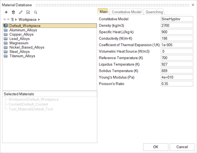 2. Ensure that you are using the default material data for this analysis.