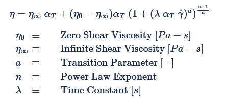 - Description: Viscosity of the polymer at max shear rate. This model is characterized by a plateau as the shear rate tends to a large value.
