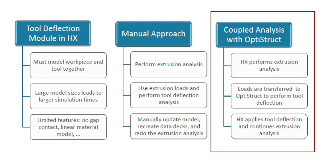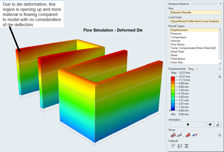 OptiStructとのダイナミックリンクを使用して、押出とダイスたわみの連成シミュレーションを実行します。