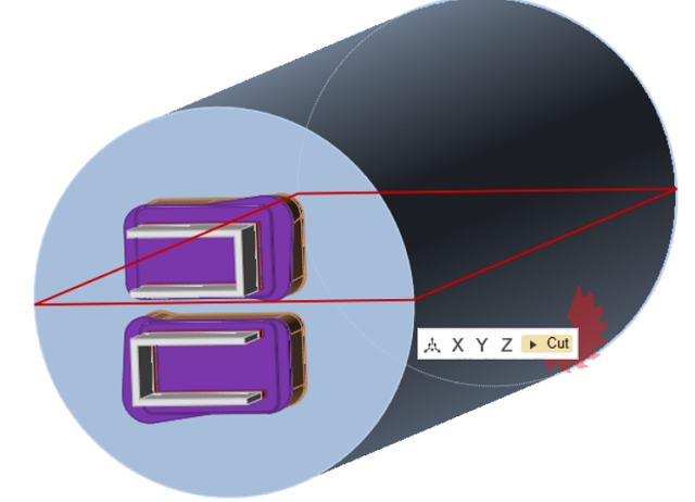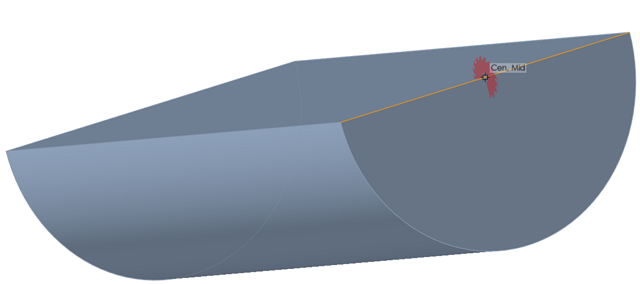 マウスカーソルをビレットダミーブロック端部の中心に移動し、図のように切り取ります。