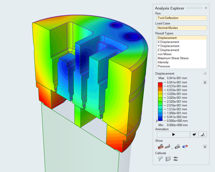 ツールたわみ解析を実行して、押出プロセスでツールがどこでどのように変形するのかを特定し、ダイス設計者がツールコンポーネント内で適宜修正できるようにします。