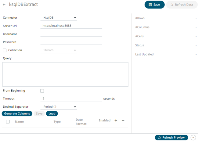 1. On the New Data Extract page, select ksqlDB in the Connector drop-down list