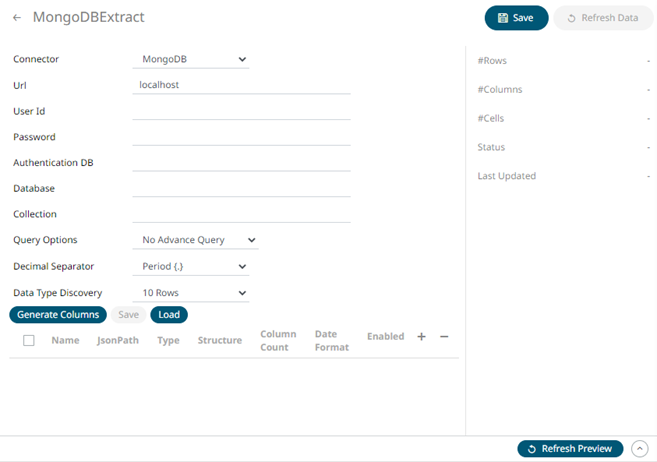 1. On the New Data Extract page, select MongoDB in the Connector drop-down list.