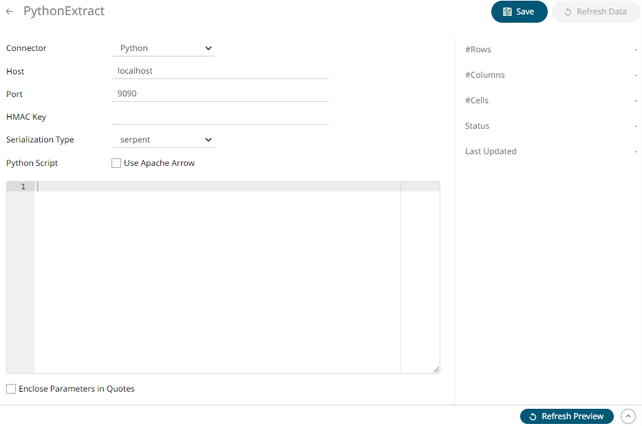 1. On the New Data Extract page, select Python in the Connector drop-down list.