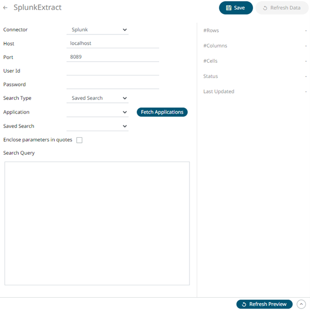 1. On the New Data Extract page, select Splunk in the Connector drop-down list.