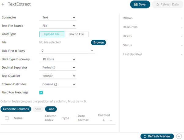 1. On the New Data Extract page, select Text in the Connector drop-down list.