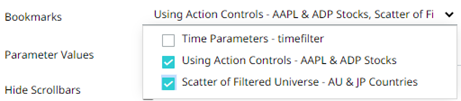6. Select bookmarks in the workbook to include in the PDF by checking their corresponding boxes in the Bookmarks drop-down list.