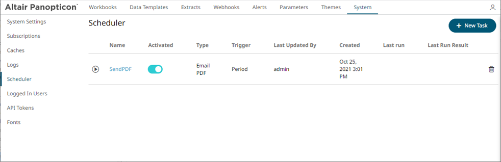 · enter the Parameter Values that will be added as parameters to the subject line of emails or as dashboard values in the PDF file.
