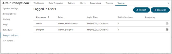 Except for the user (i.e., admin) who is calling out the logging out of the other users, all of the other users are logged out.