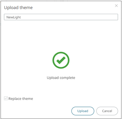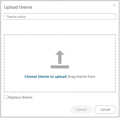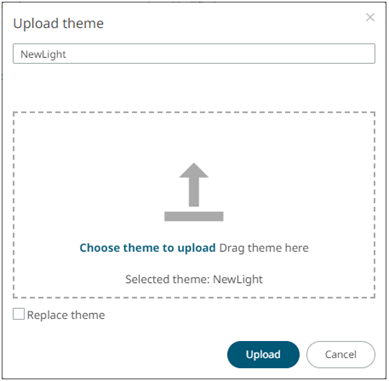 The name of the workbook theme is displayed on the uploaded workbook palette area and in the Name box.