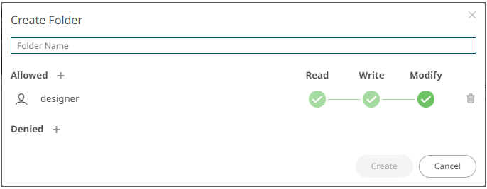 A user with an Administrator or Designer role can create folders.