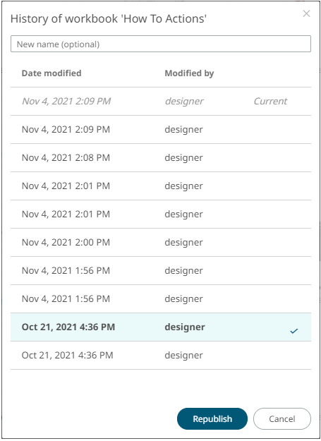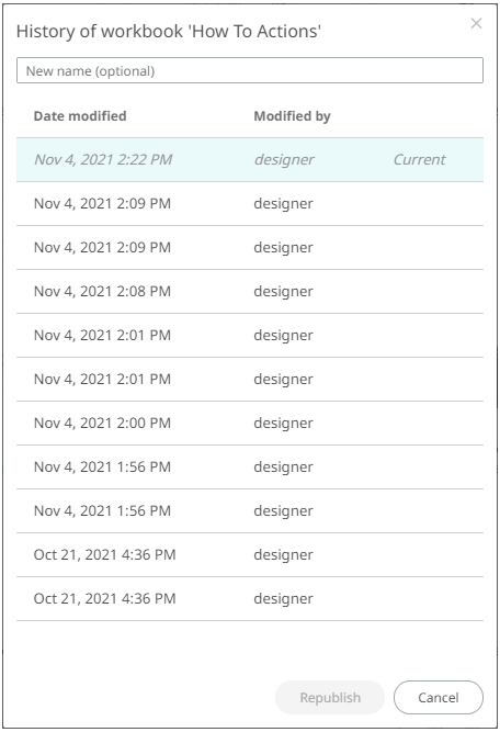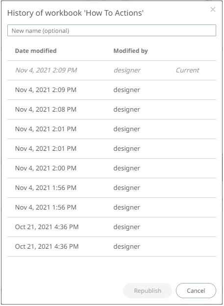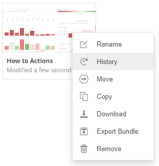 1. On the Workbooks tab, right-click on a workbook and select History on the context menu.