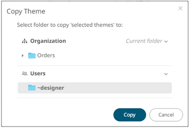 Users with a Designer role are allowed to copy themes to another folder or subfolder where they have permission.