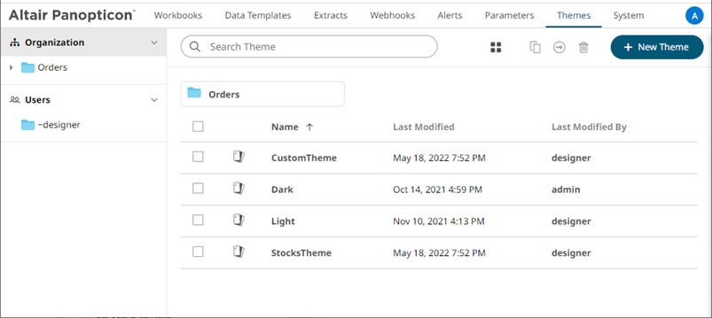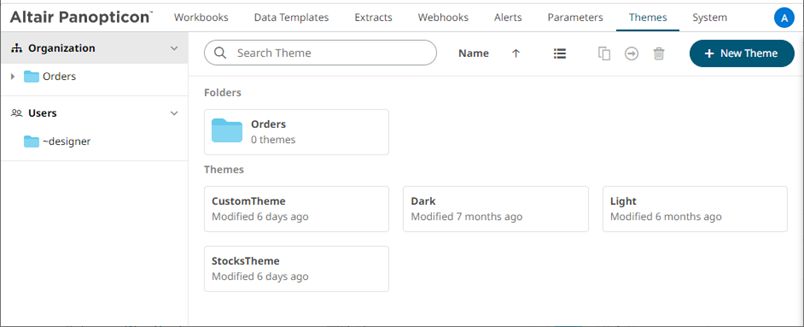 On either display view style, clicking on a themes title or thumbnail displays the Theme page.