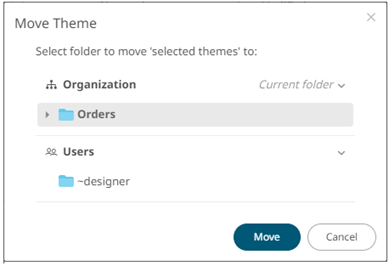 Users with a Designer role are allowed to move themes to another folder or subfolder where they have permission.