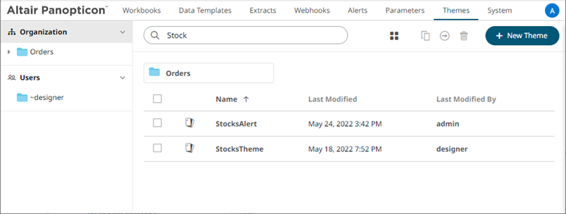 On the Themes tab, to search for a particular theme, enter it in the Search Theme box.