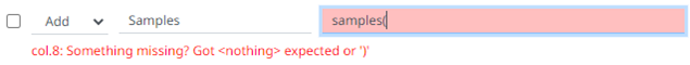 A validation error displays with a suggestion to help build the expression.