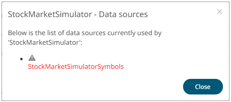 However, if is displayed, click it to display the Application Data Sources message. For example:
