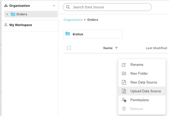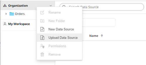 1.     To upload data sources, you can either right-click a folder or subfolder then select Upload Data Sources:
