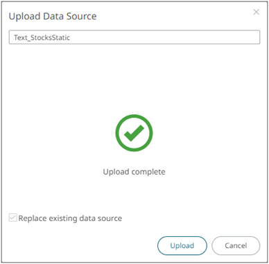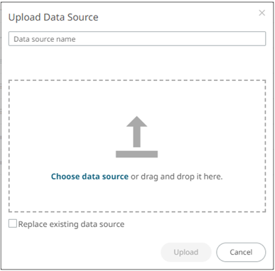 The name of the data source is displayed on the uploaded data source area and in the Name box.