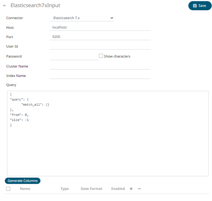 1.     In the New Data Source page, select Input > Elasticsearch 7.x in the Connector drop-down list.