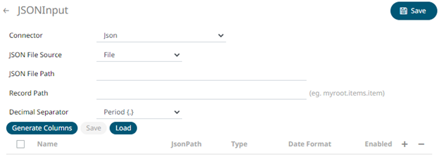 1.     In the New Data Source page, select Input > Json in the Connector drop-down list.