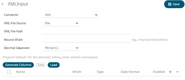 1. In the New Data Source page, select Input > Xml in the Connector drop-down list.