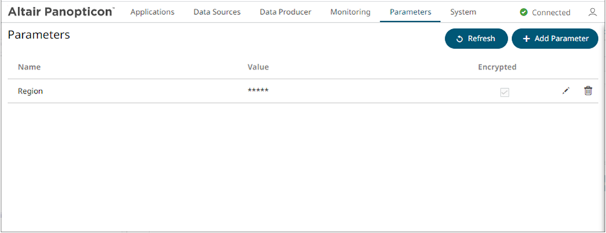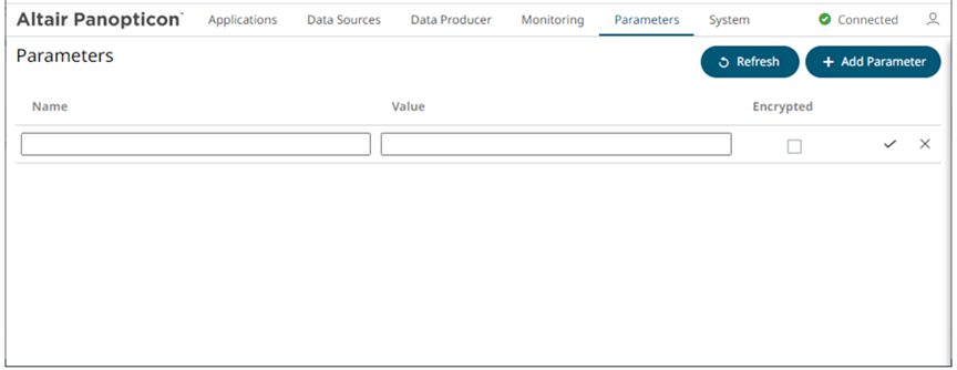 2. Enter a Name for the new parameter and the Value.