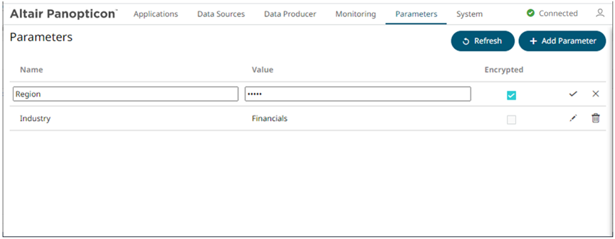1. On the Parameters tab, click the Edit icon of a parameter you want to modify.