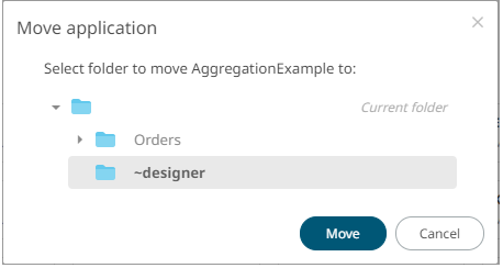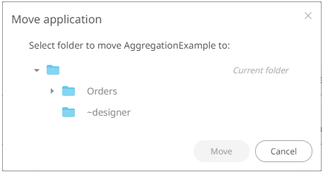 The Move Application dialog displays with the folder or subfolders where the user is allowed to move the application.