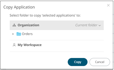 Users with Administrator or Designer role are allowed to copy an application to another folder or subfolder to which they have permission.