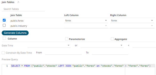 Also, expanding the Join Tables displays the list of tables that you can join.