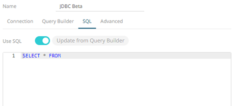 1. In the New Data Source page, select Input > JDBC Beta in the Connector drop-down list.