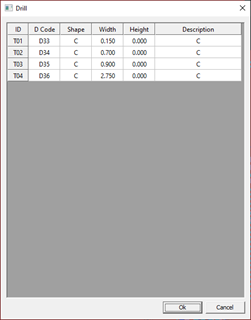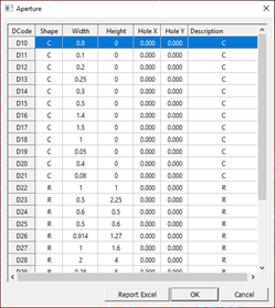 Define Aperture and Tool List Check the Aperture Object information used in the shape of the Gerber file. Aperture List: You can see aperture objects in the list that is used in Gerber. Figure 1. Tool List: Check the Drill Aperture Object information of Gerber file. Figure 2.
